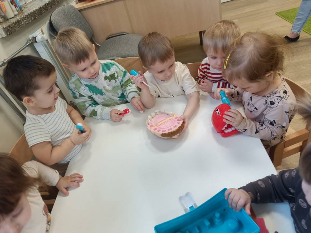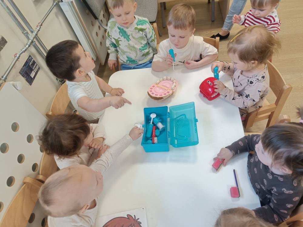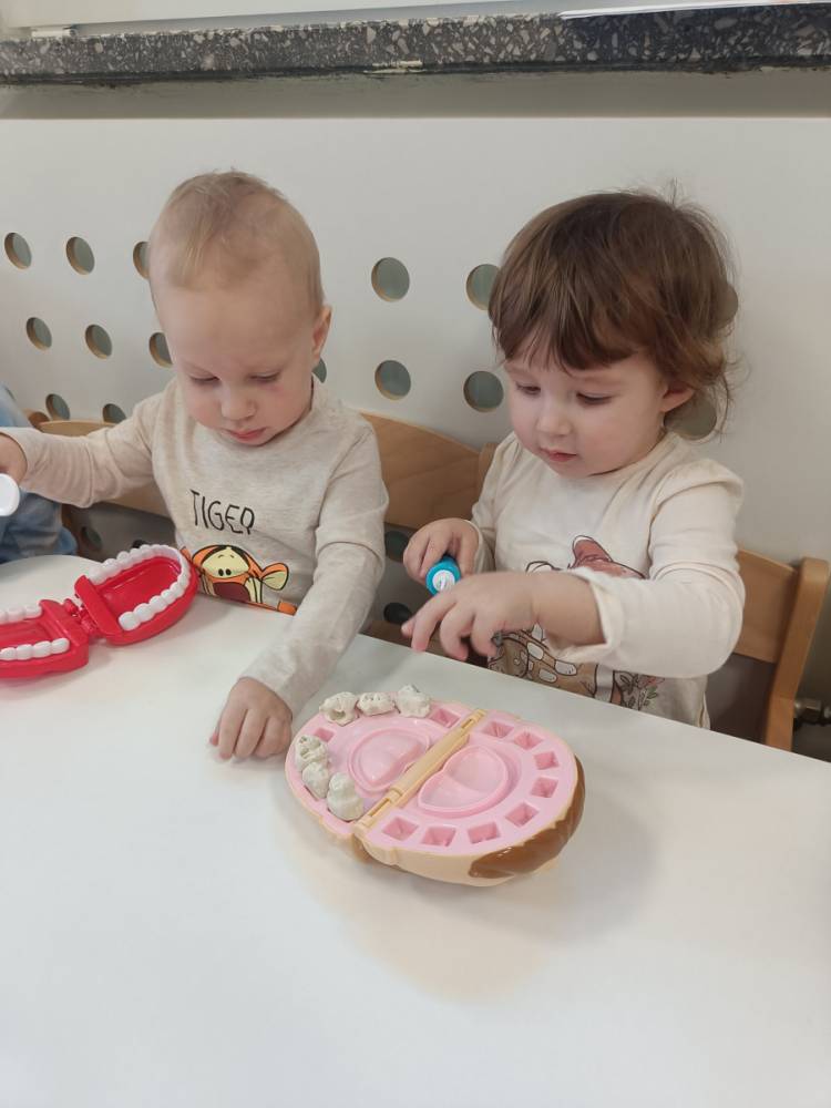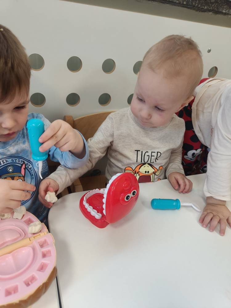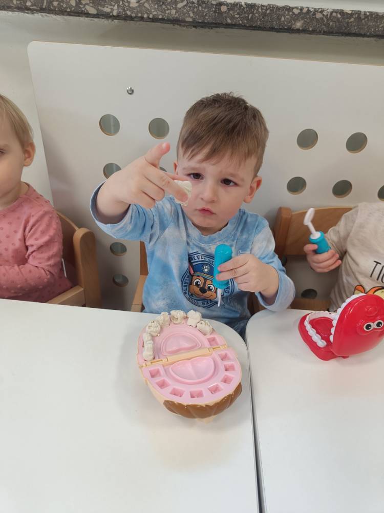 Najwięcej radości przyniosły zabawy w dentystę 🪥 – dzieci mogły wcielić się w rolę lekarza i pacjenta, „leczyć” ząbki oraz sprawdzać, czy są zdrowe i zadbane.