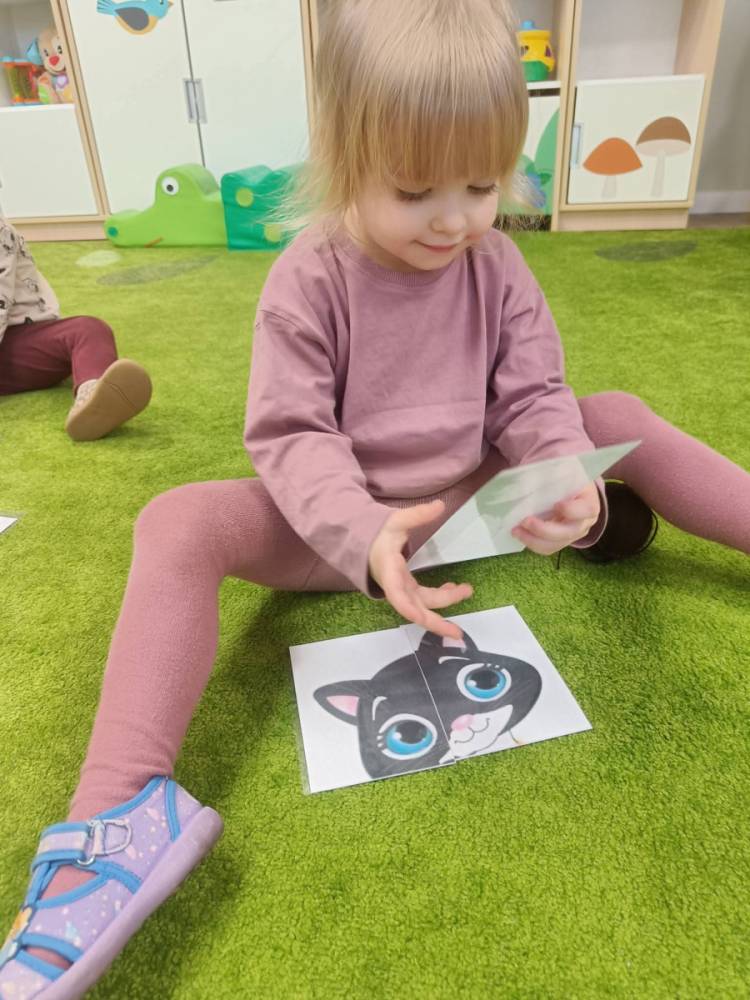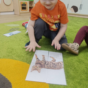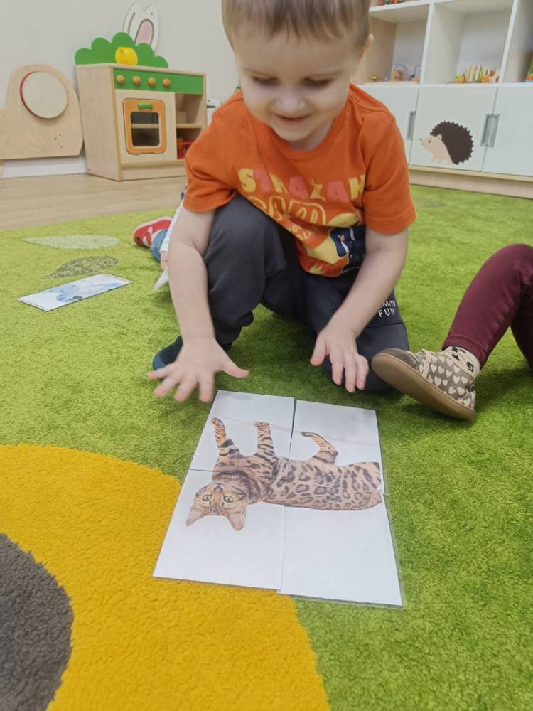 - układaniu puzzli z kotkiem – ćwiczyliśmy rączki i spostrzegawczość