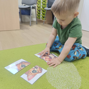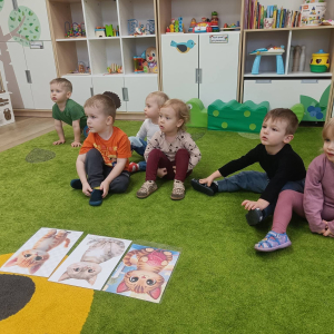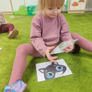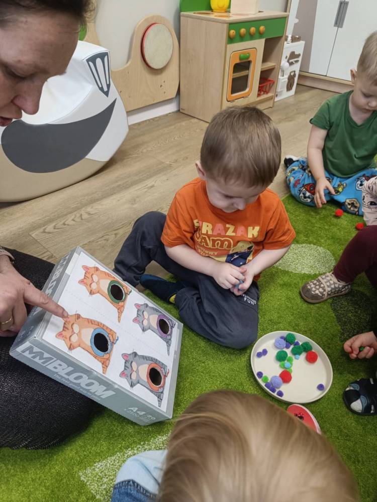 - zabawie „Znajdź kotka z…?” – ćwiczenia spostrzegawczości i uwagi