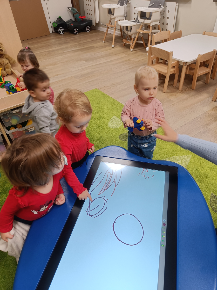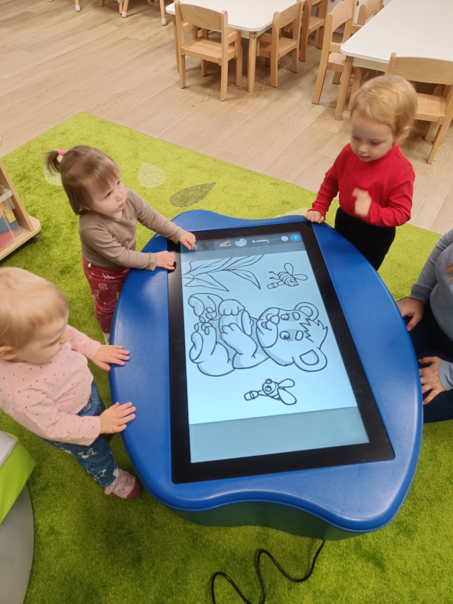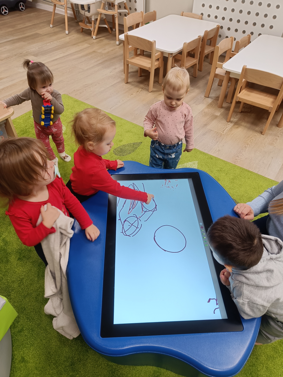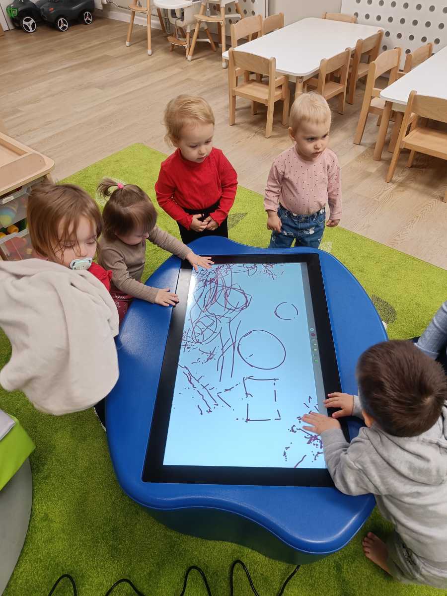 Maluchy mogły odkrywać kolory, kształty i dźwięki, a także rozwijać motorykę małą oraz logiczne myślenie poprzez zabawę. Interaktywny stolik zachęcał dzieci do wspólnego działania, dotykania, przesuwania i eksperymentowania — a radości było co niemiara!