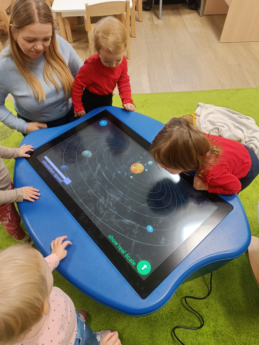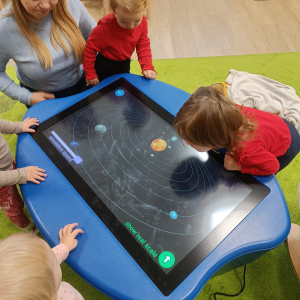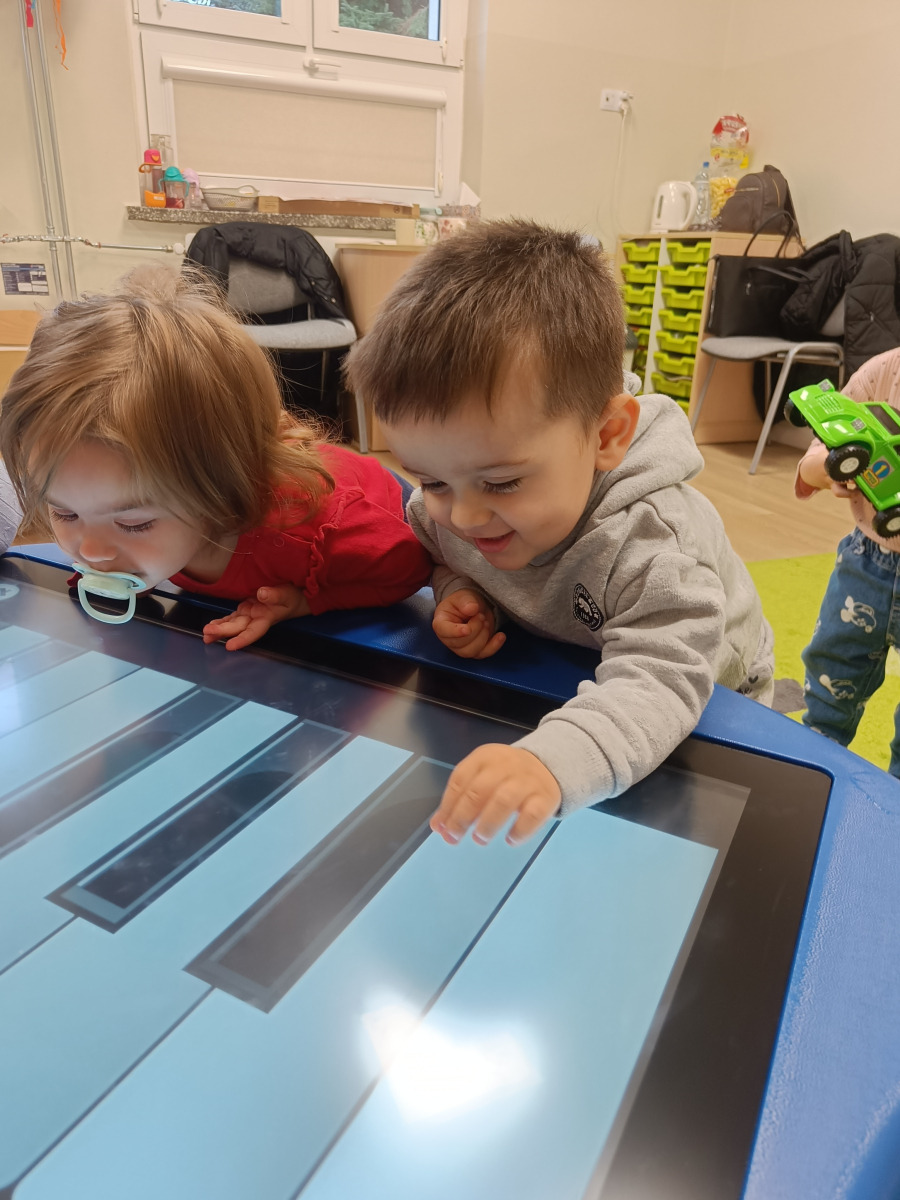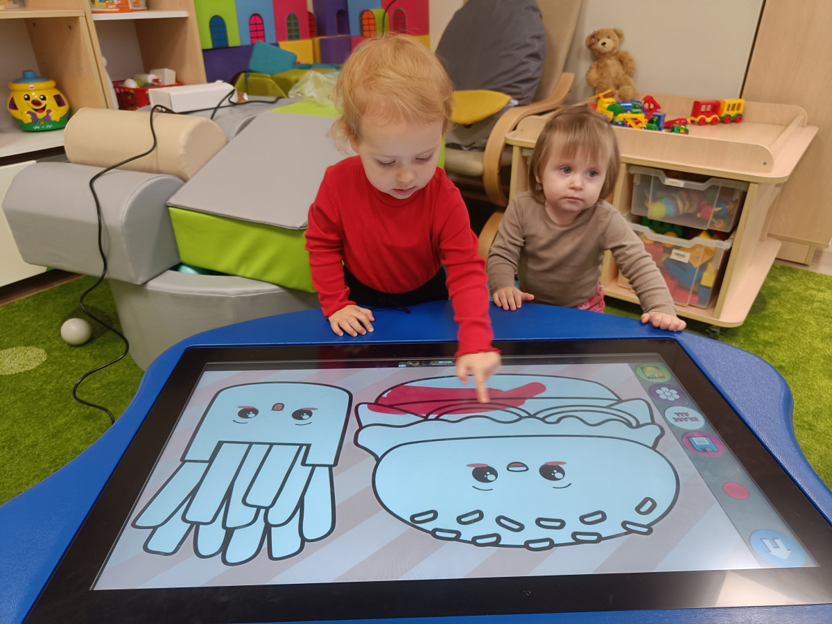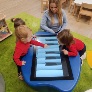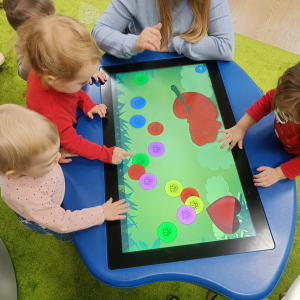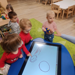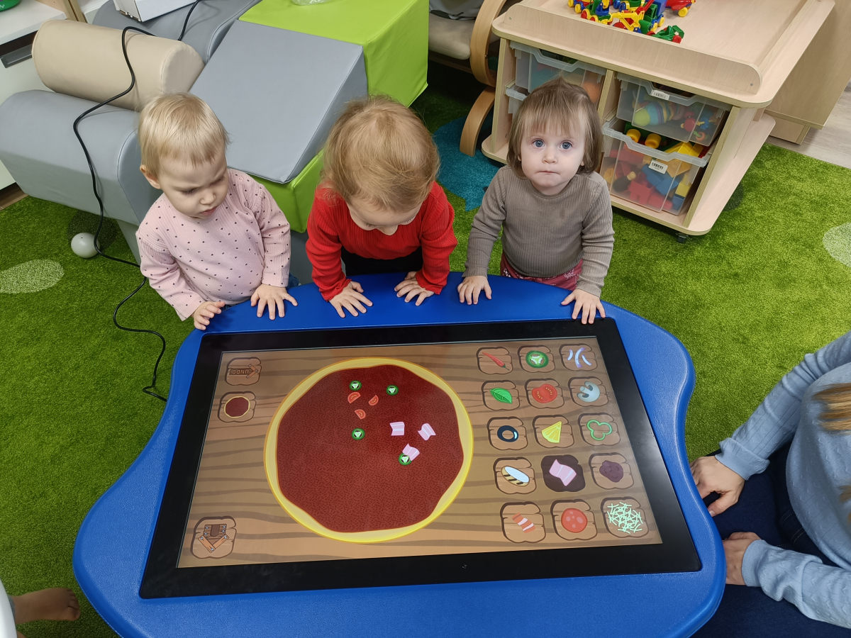 Maluchy mogły odkrywać kolory, kształty i dźwięki, a także rozwijać motorykę małą oraz logiczne myślenie poprzez zabawę. Interaktywny stolik zachęcał dzieci do wspólnego działania, dotykania, przesuwania i eksperymentowania — a radości było co niemiara!