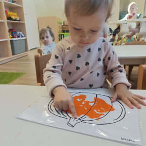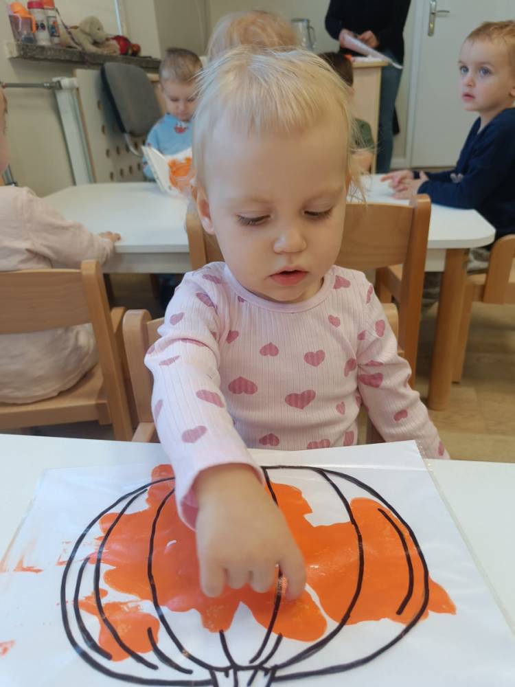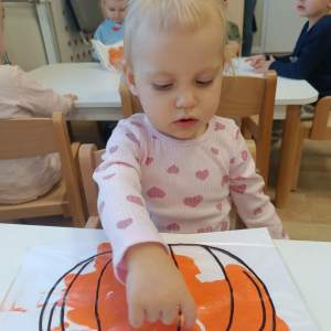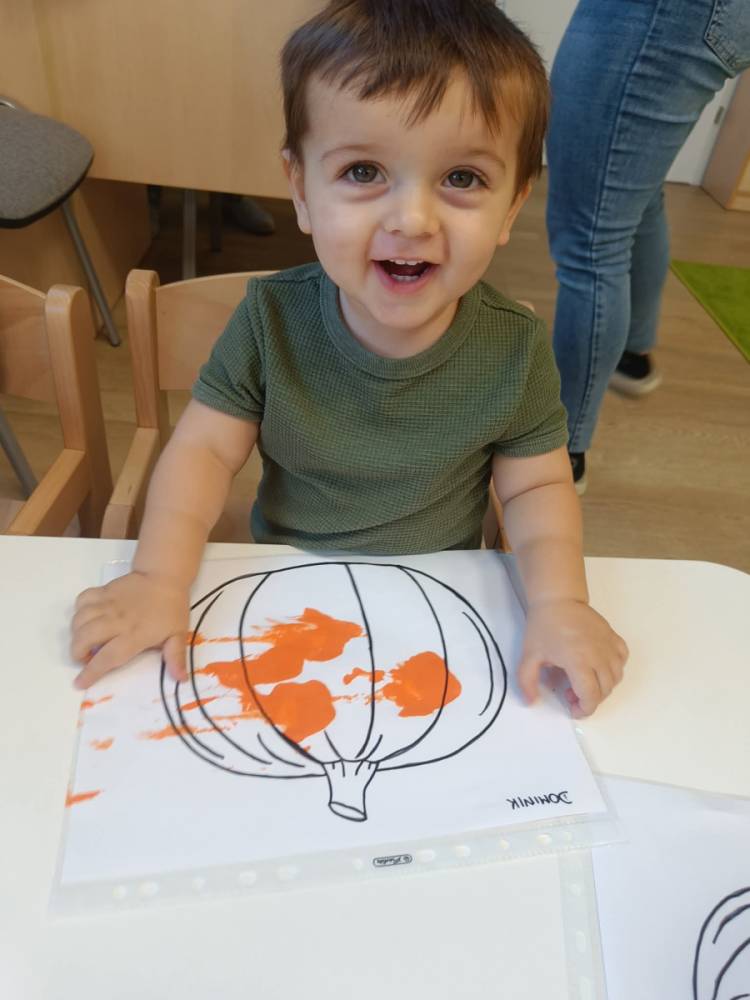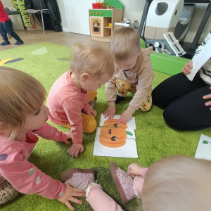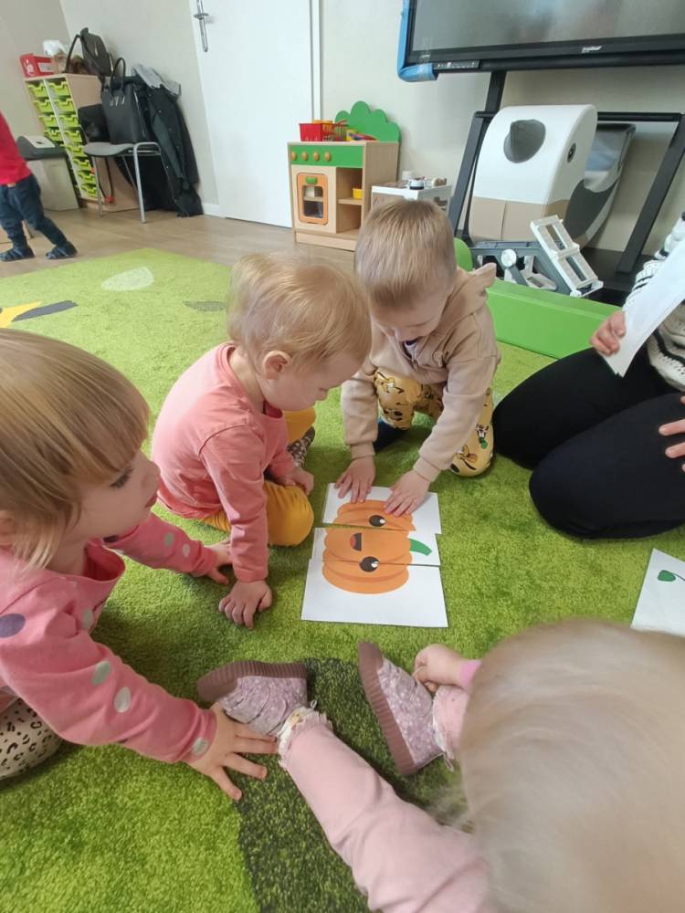 - układały puzzle z motywem dyni, rozwijając spostrzegawczość i koordynację wzrokowo–ruchową,