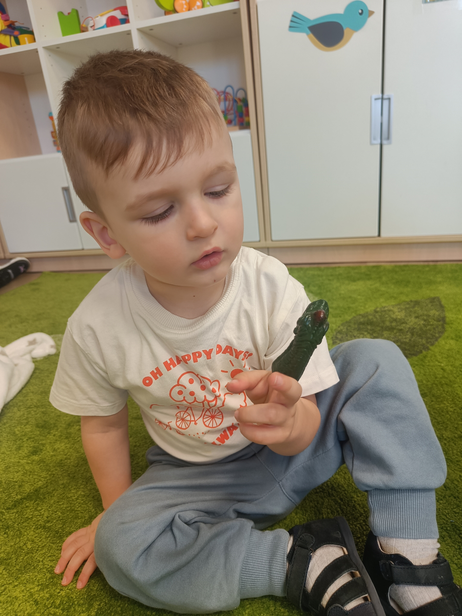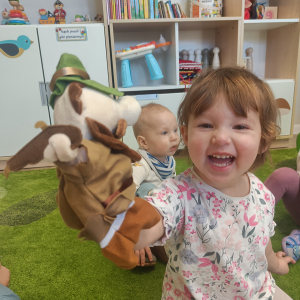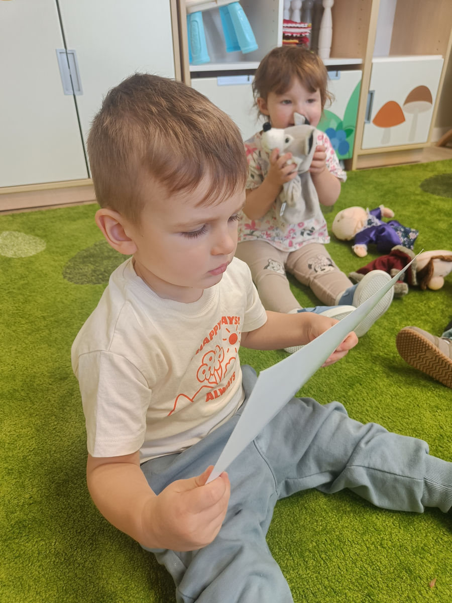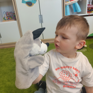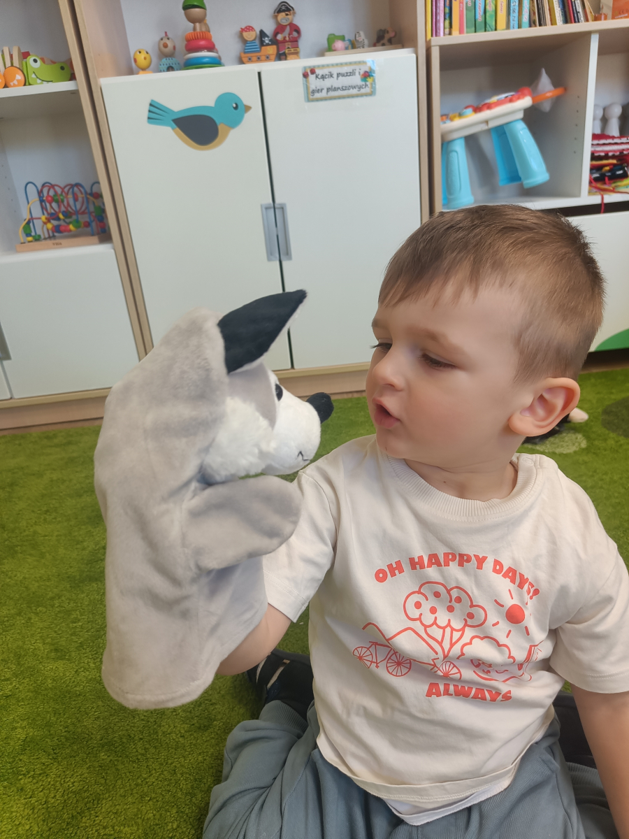 Dzieci poznały różne rodzaje lalek: kukiełki, pacynki oraz fingerki. Sprawdzaliśmy, czym się różnią, jak się nimi porusza i jak mogą „ożywać” w małych rączkach.Największą frajdą było odkrywanie, jak powstaje pacynka – od pomysłu, przez materiały, aż po gotową lalkę. Mali artyści z ogromnym zaangażowaniem uczestniczyli w zabawach teatralnych, rozwijając wyobraźnię, kreatywność i sprawność manualną.