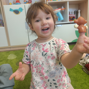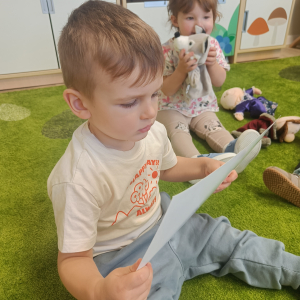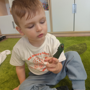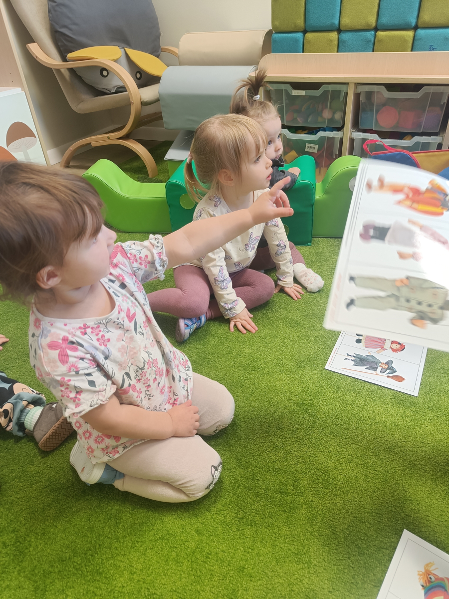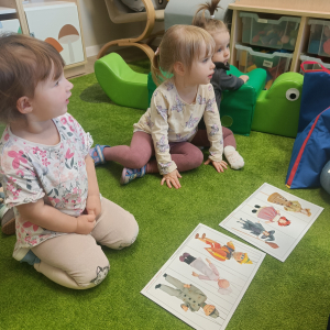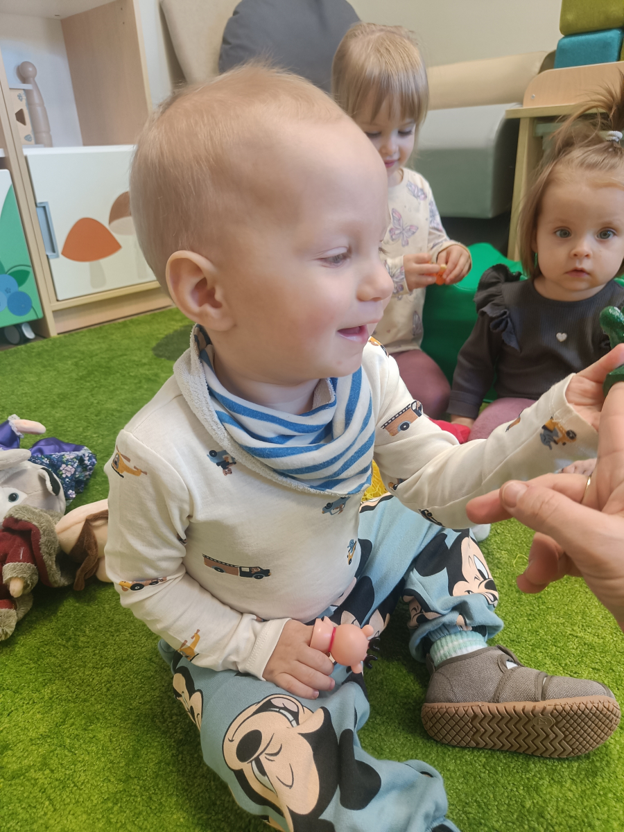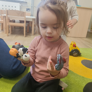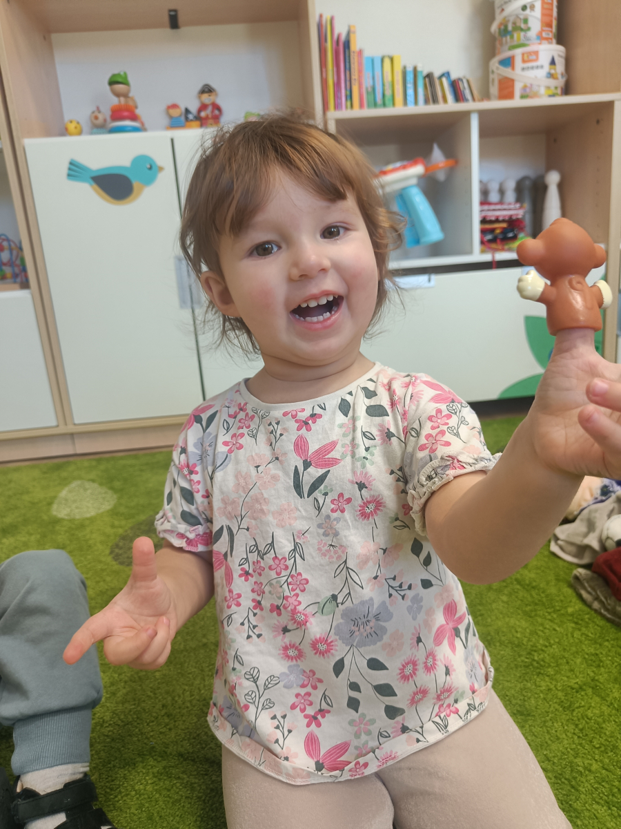 Dzieci poznały różne rodzaje lalek: kukiełki, pacynki oraz fingerki. Sprawdzaliśmy, czym się różnią, jak się nimi porusza i jak mogą „ożywać” w małych rączkach.Największą frajdą było odkrywanie, jak powstaje pacynka – od pomysłu, przez materiały, aż po gotową lalkę. Mali artyści z ogromnym zaangażowaniem uczestniczyli w zabawach teatralnych, rozwijając wyobraźnię, kreatywność i sprawność manualną.